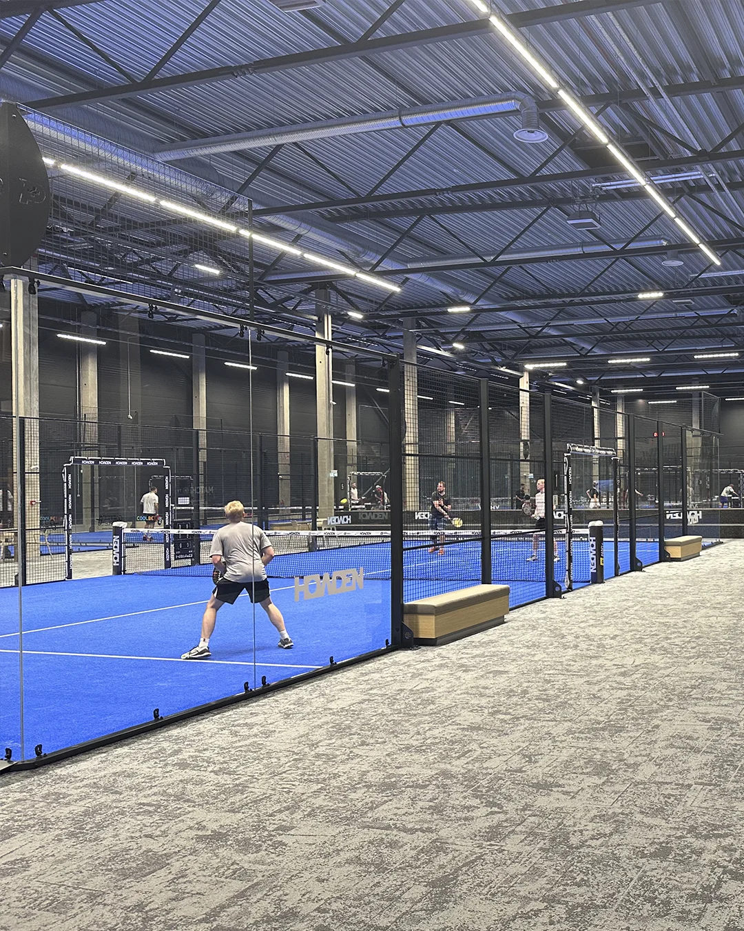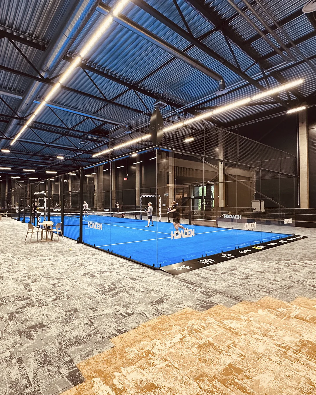 El proyecto cuenta con varias de nuestras pistas 360 en su versión indoor, ideales para el juego interior por su visibilidad, y con nuestra clásica Pista Bora instalada en el exterior, aportando resistencia y durabilidad al aire libre. Un entorno completo y cómodo, diseñado para disfrutar del pádel en cualquier época del año.